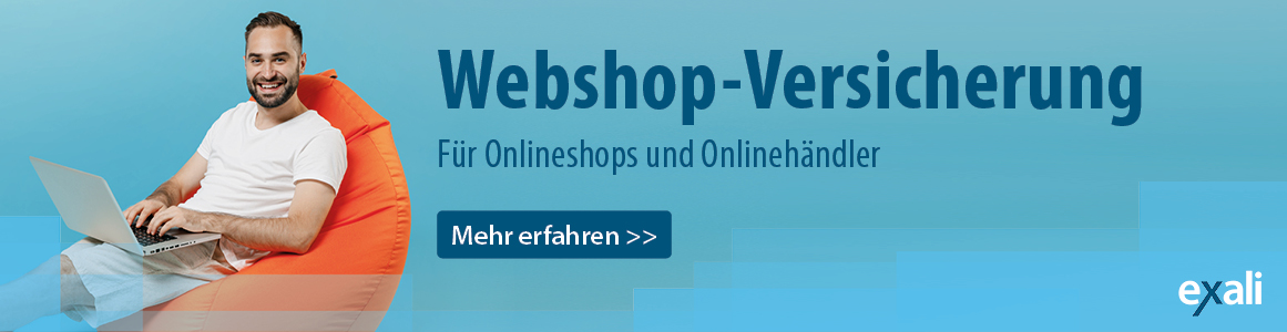 Trotz aller Vorsicht und Information: Die Stolperfallen für Sie als Onlinehändler:in sind enorm. Damit diese finanziellen Risiken nicht Ihr eCommerce Business gefährden, sollten Sie auf eine Webshop-Versicherung über exali.de setzen. Sie bietet Ihnen einen umfangreichen Schutz, zum Beispiel vor Abmahnungen und Schadenersatzforderungen, Rechtsverletzungen, Cyber-Risiken und Produkthaftungsfällen (Produkthaftpflicht-Versicherung). Über die beinhaltete Rechtschutzfunktion (so genannter passiver Rechtsschutz) übernimmt die Webshop-Versicherung im Schadenfall auch die Kosten für Awältinnen und Anwälte sowie Gutachter:innen.