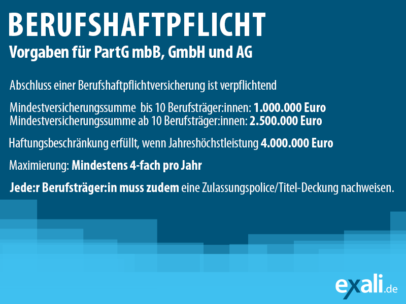 Vorgaben Berufshaftpflicht für PartG mbB, GmbH und AG